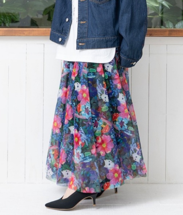 いろんな柄を組み合わせた、カラフルなデザインがカワイイ! 大人気のふんわりチュールスカートに新作が登場です! ネコやお花や蝶々、ScoLarのロゴが入ったPOPなデザイン♪ チュール素材ならではの軽やかな質感とシルエット! 鮮やかなカラーでコーデのアクセントとして取り入れやすく、さまざまなスタイリングで活躍してくれそうな一着となっております♪