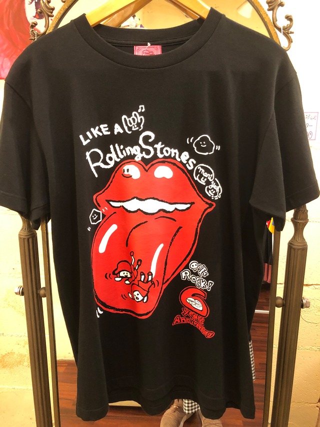 まり屋6周年記念Tシャツがついに通販に登場! まり描きおろし、ローリングストーンズのロゴマークをオマージュしたデザインが 可愛くてかっこいい! 転がる石のようにすすんできた6年間を面白く楽しく描きました♪ ロックTシャツのテイストが普段使いにもぴったり! メンズサイズなので、男女問わず着られます。 コットン100% 5.6オンス サイズ 単位 cm M 身丈 69 身幅 52 肩幅 46 袖丈20 L 身丈 73 身幅 55 肩幅 50 袖丈22 XL 身丈 77 身幅 58 肩幅 54 袖丈24