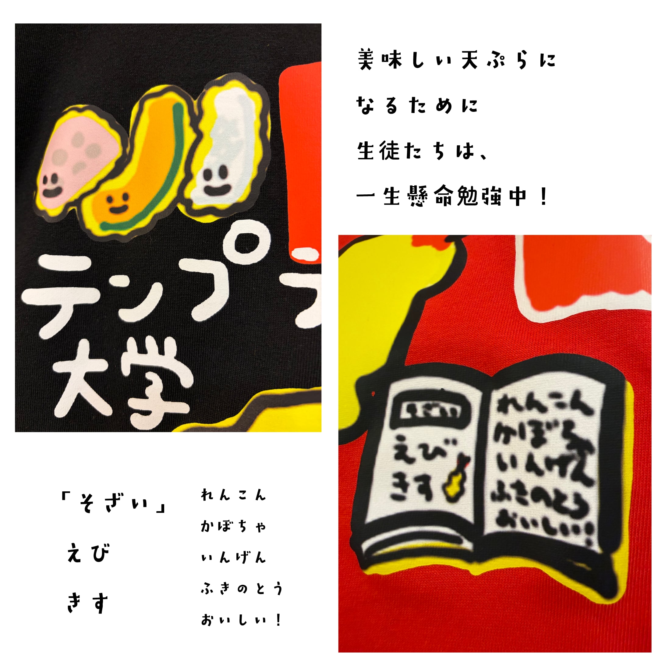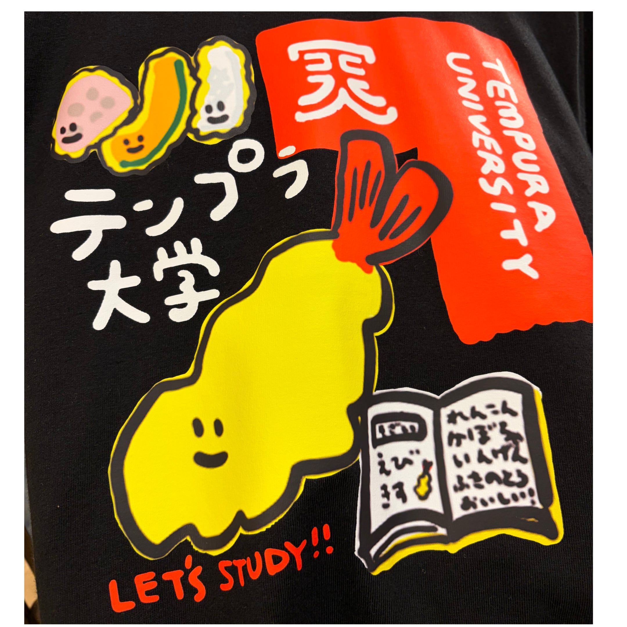 みんなも、天ぷら大学Tシャツを着てレッツスタディ!
