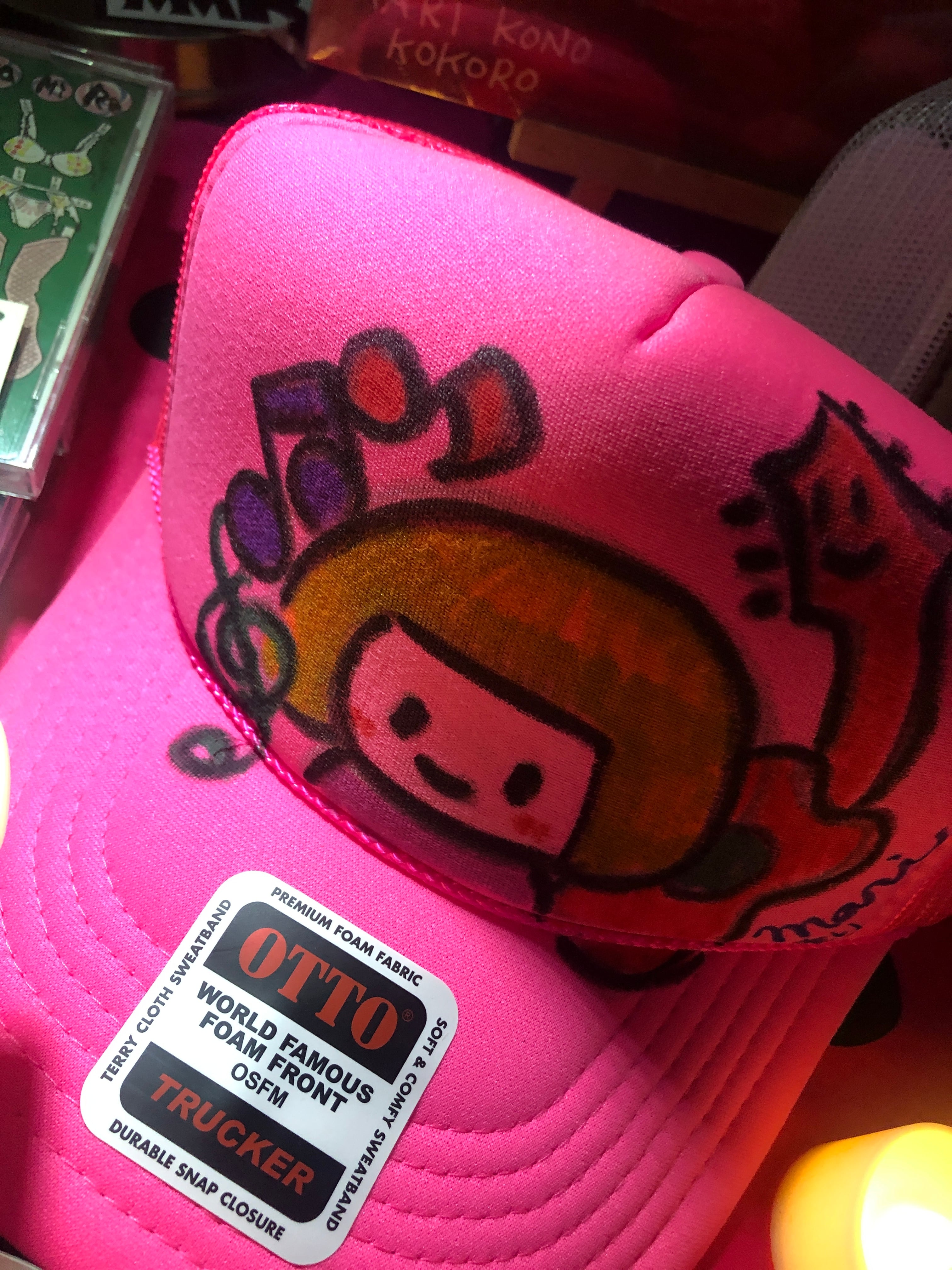 まりがアクリルペンで描き下ろした世界に一つだけのキャップです。どれにする?