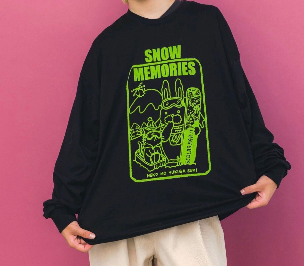 雪にまつわる思い出がいっぱい詰まったロングスリーブTシャツです。