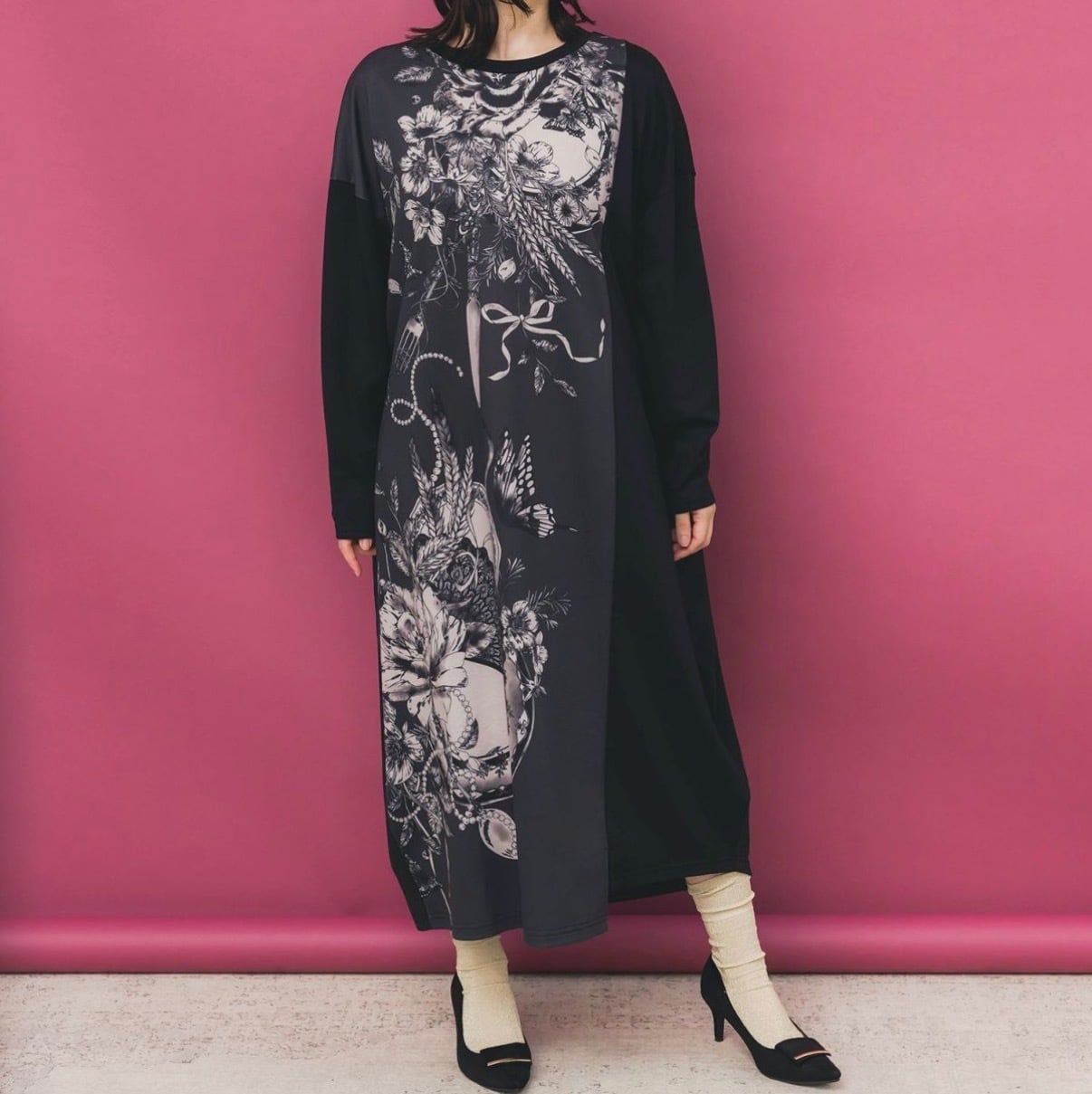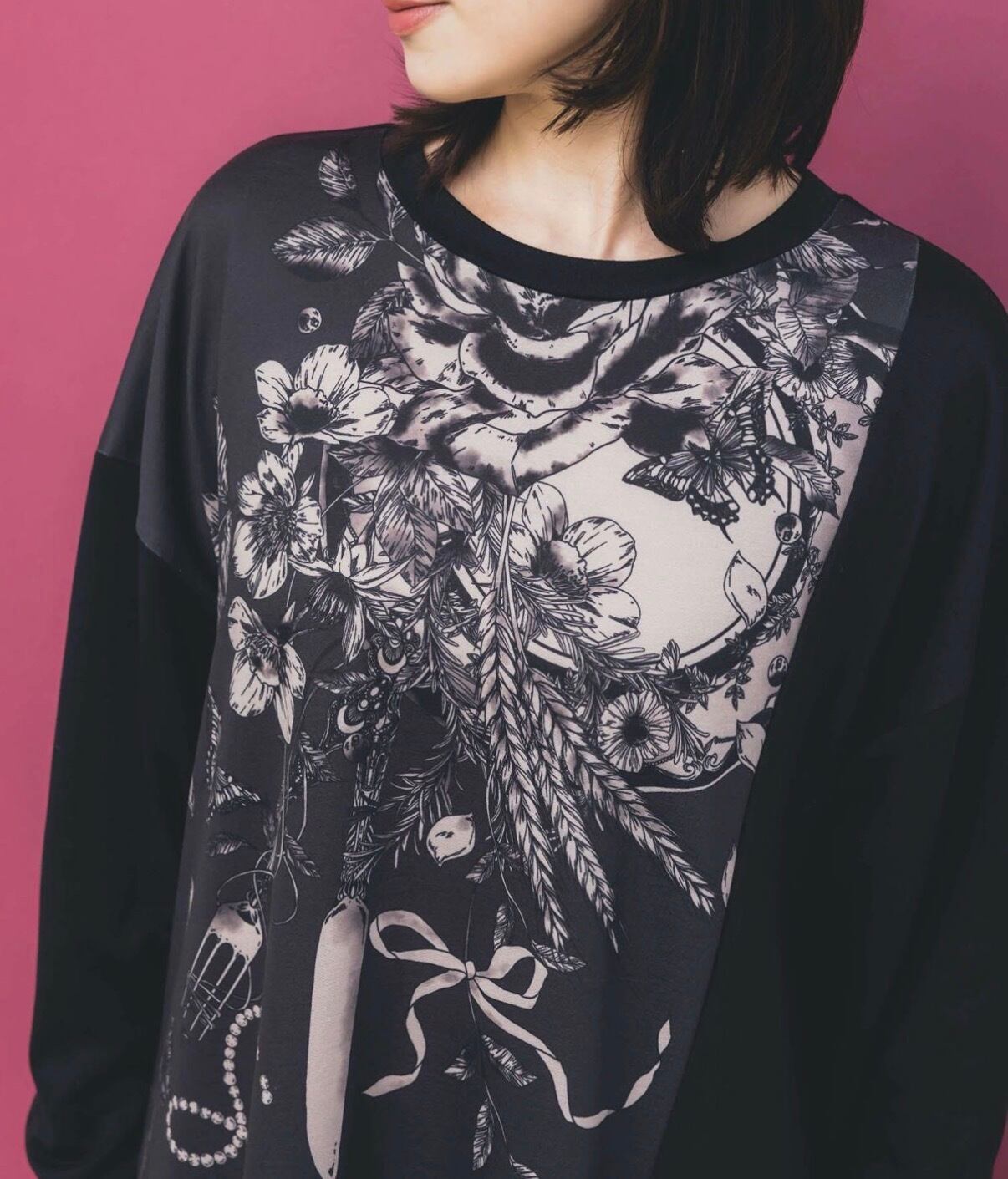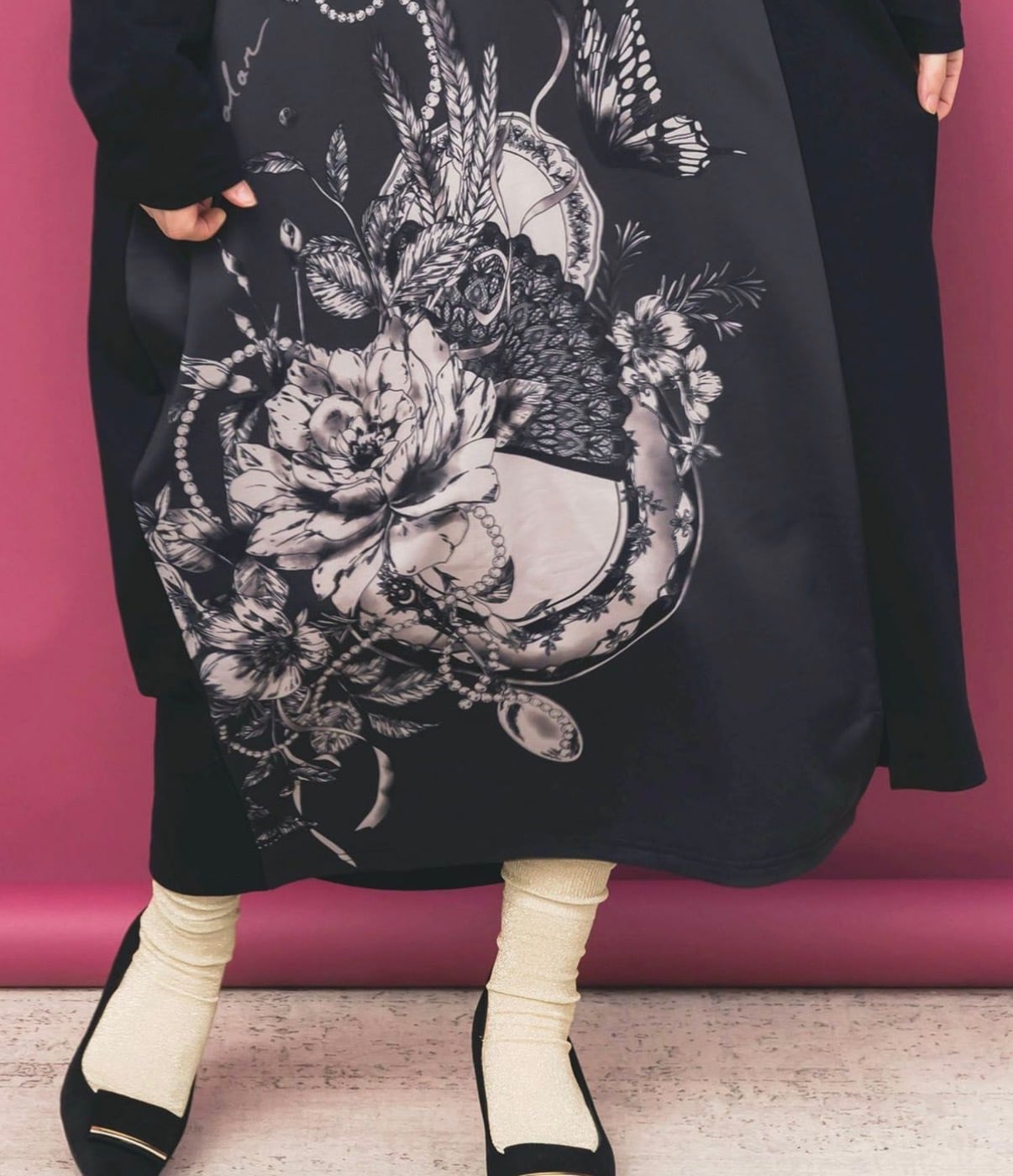 お花やカトラリーのロマンティックなプリントがアクセントになった、